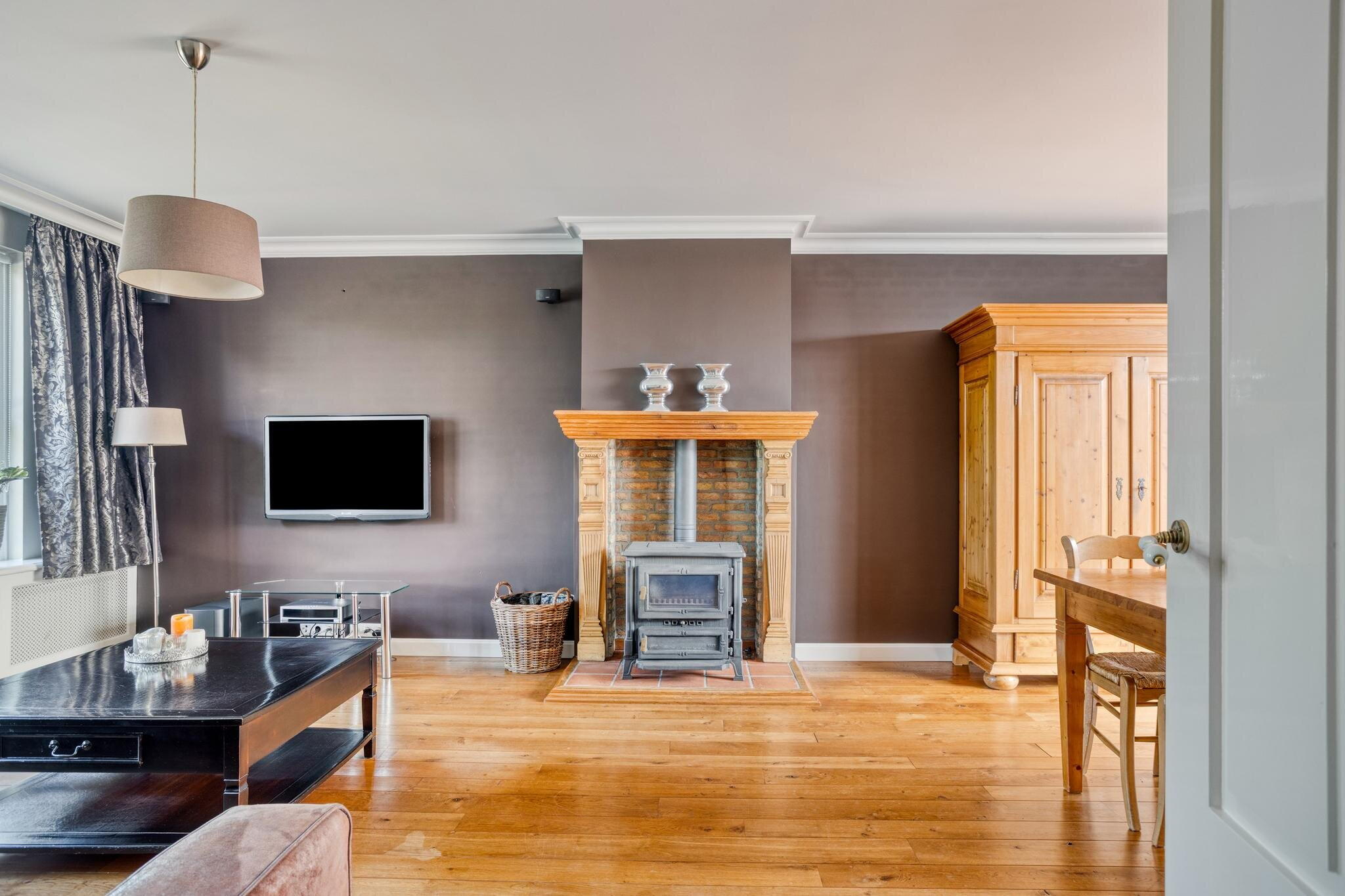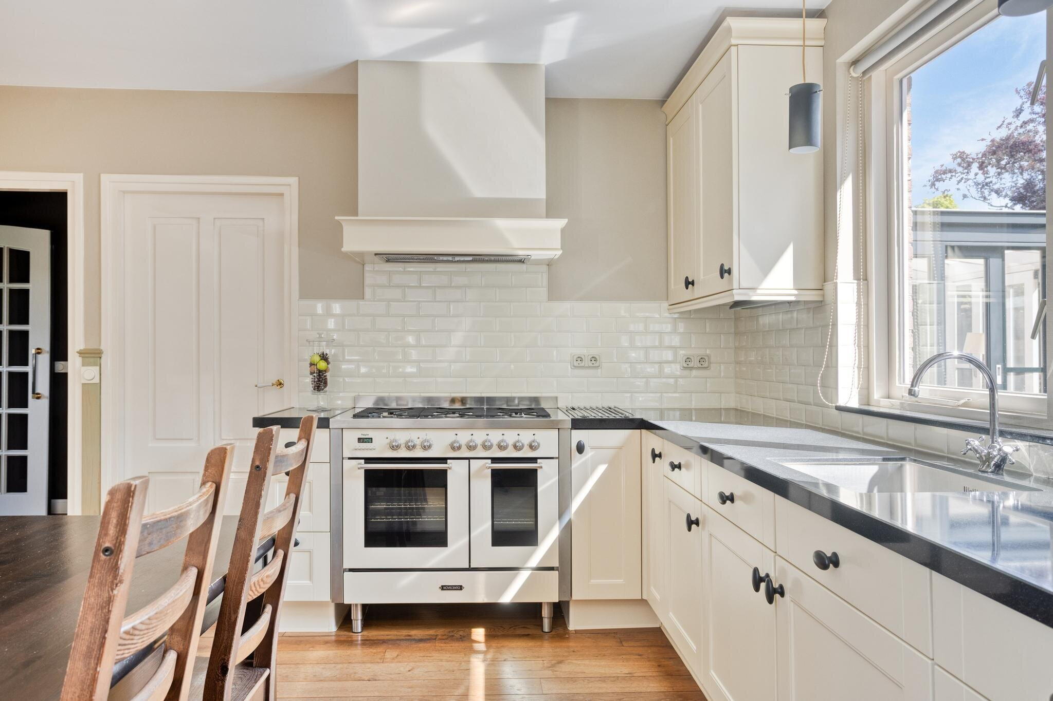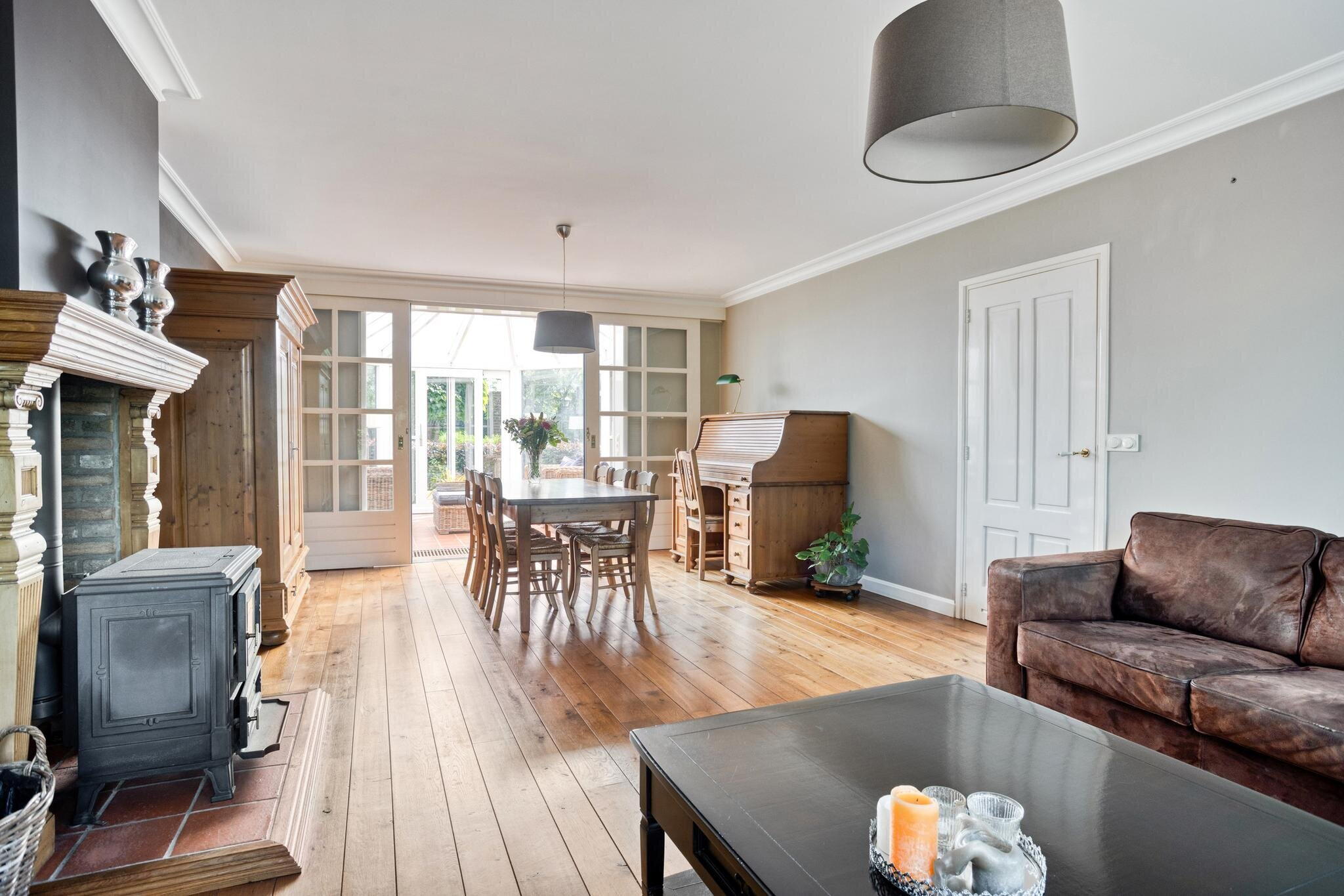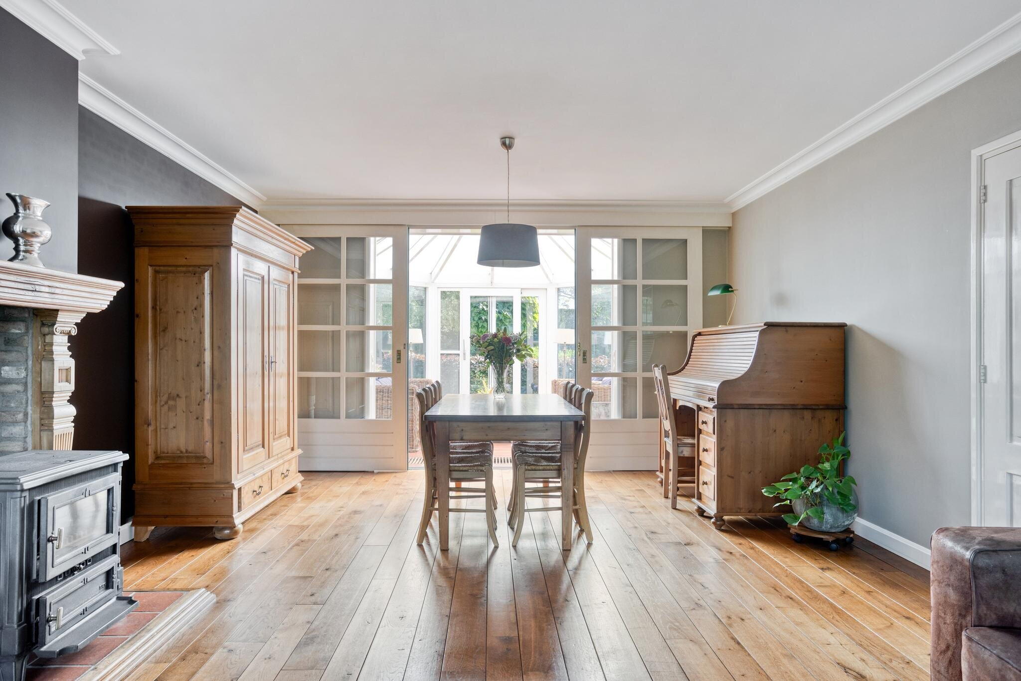 De lichte woonkamer is ruim en straalt warmte uit. Denk aan een haard, mooie vloeren, en authentieke details zoals sierlijsten en originele ramen. De serre is een ware blikvanger: afsluitbaar met schuifdeuren, maar voelt als een verlenging van buiten. Veel licht en uitzicht op de tuin – alsof je binnen én buiten tegelijk bent. De keuken is royaal, stijlvol in landelijke sfeer, en van alle gemakken voorzien. Met veel lichtinval, doorkijkjes naar buiten én voldoende ruimte voor een eettafel is dit echt een plek waar je graag bent. Vanuit de keuken heb je toegang tot een handige trapkast, een berging met wasmachine aansluitingen en een deur naar de tuin.