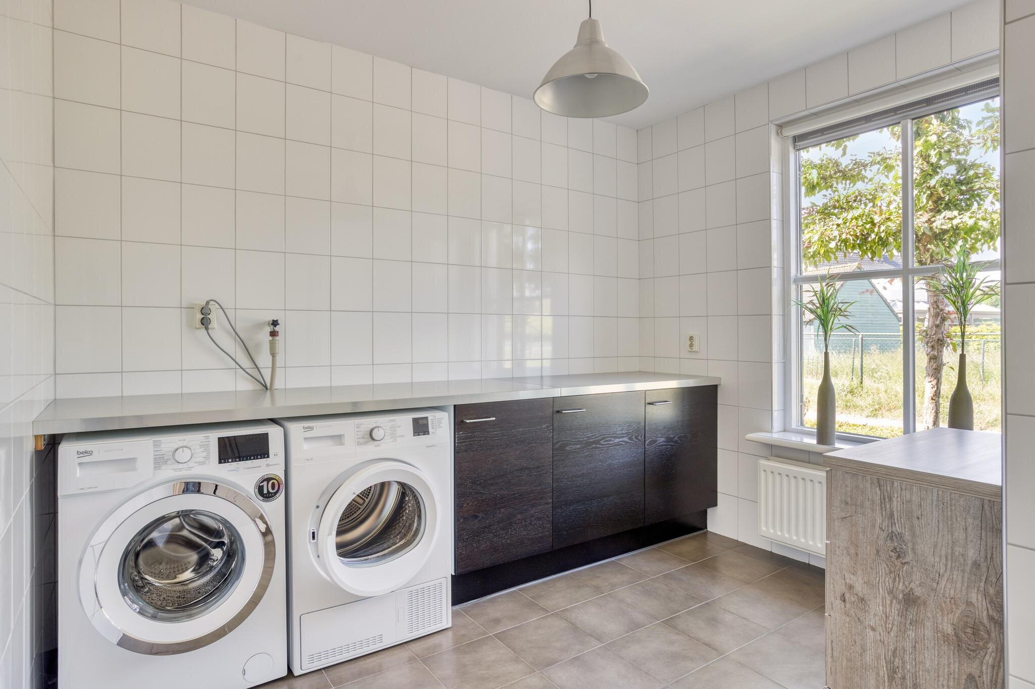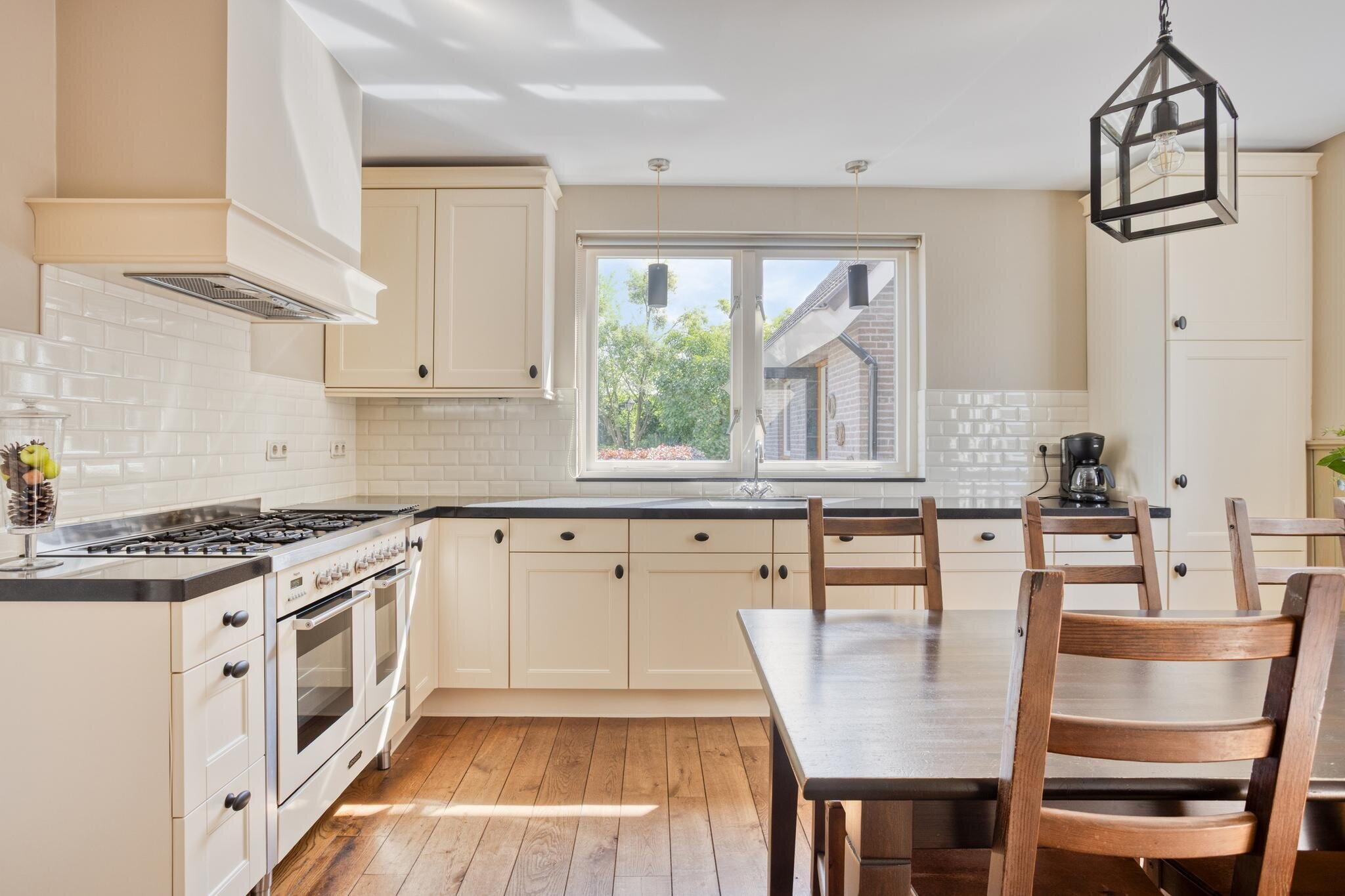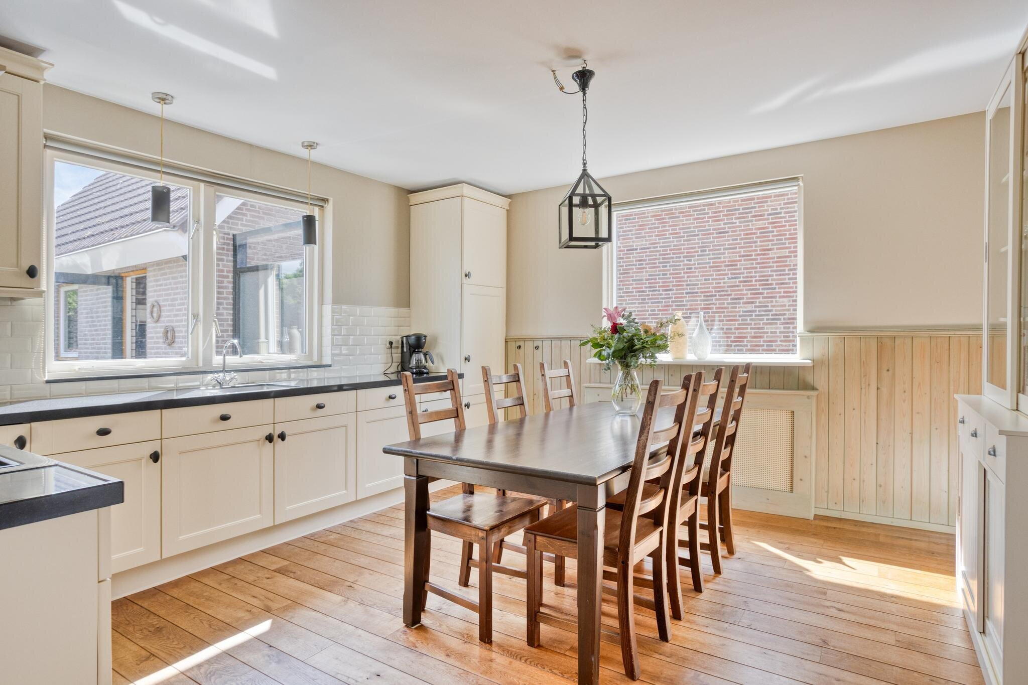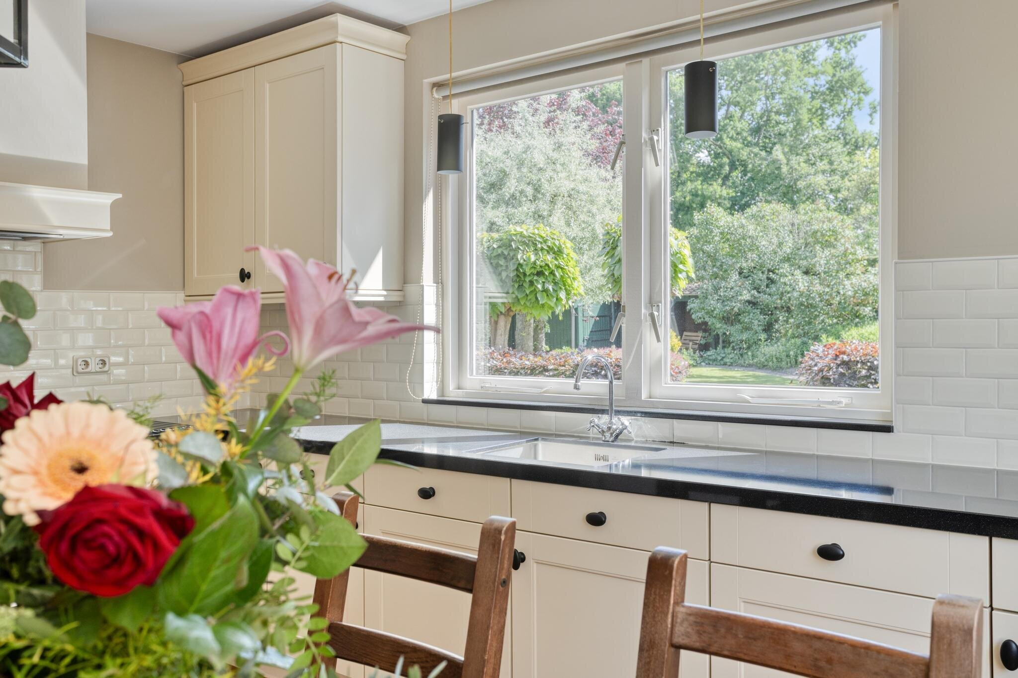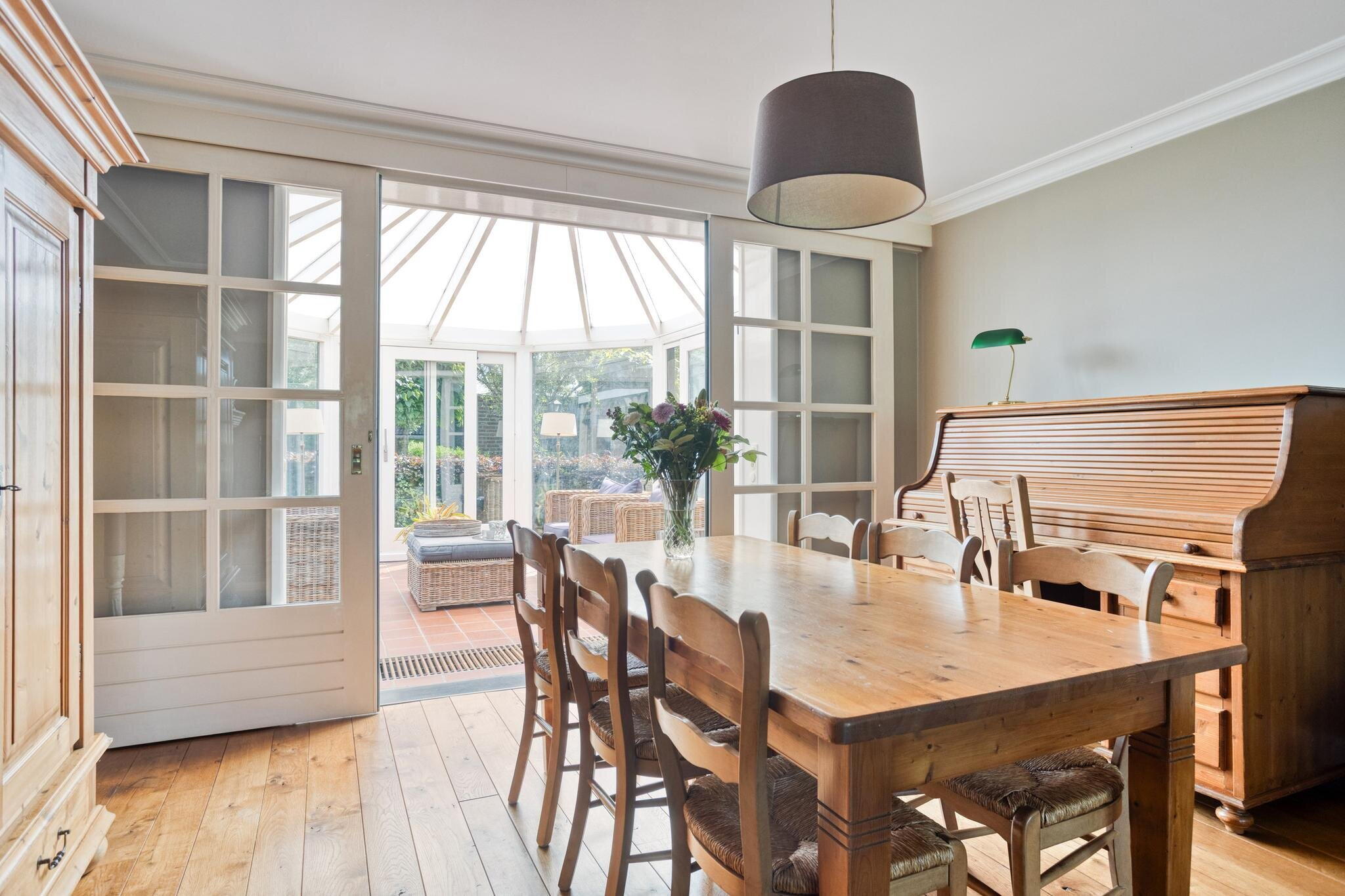 De lichte woonkamer is ruim en straalt warmte uit. Denk aan een haard, mooie vloeren, en authentieke details zoals sierlijsten en originele ramen. De serre is een ware blikvanger: afsluitbaar met schuifdeuren, maar voelt als een verlenging van buiten. Veel licht en uitzicht op de tuin – alsof je binnen én buiten tegelijk bent. De keuken is royaal, stijlvol in landelijke sfeer, en van alle gemakken voorzien. Met veel lichtinval, doorkijkjes naar buiten én voldoende ruimte voor een eettafel is dit echt een plek waar je graag bent. Vanuit de keuken heb je toegang tot een handige trapkast, een berging met wasmachine aansluitingen en een deur naar de tuin.