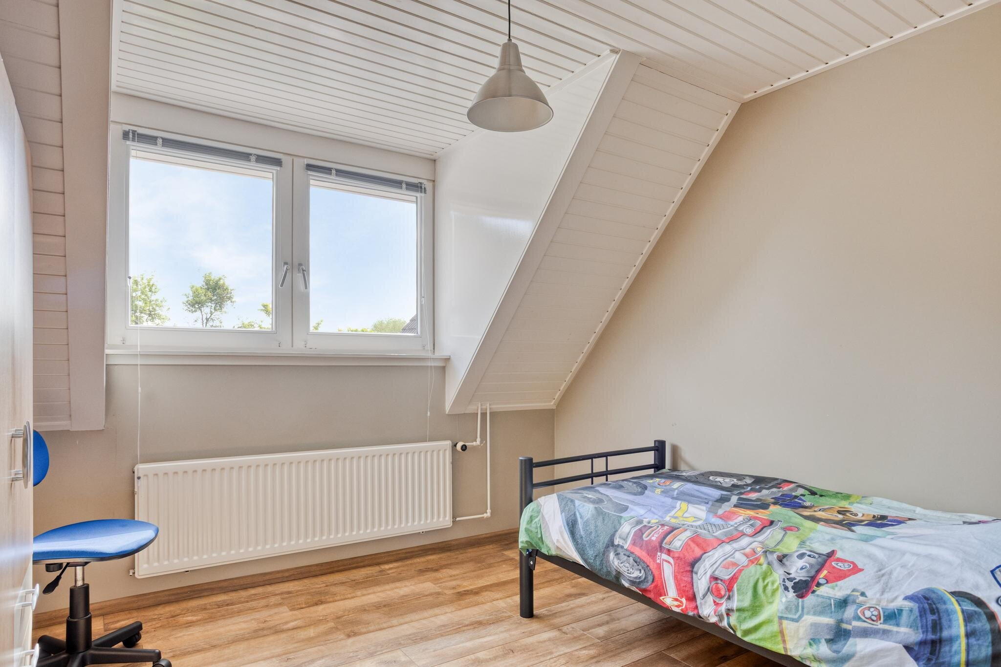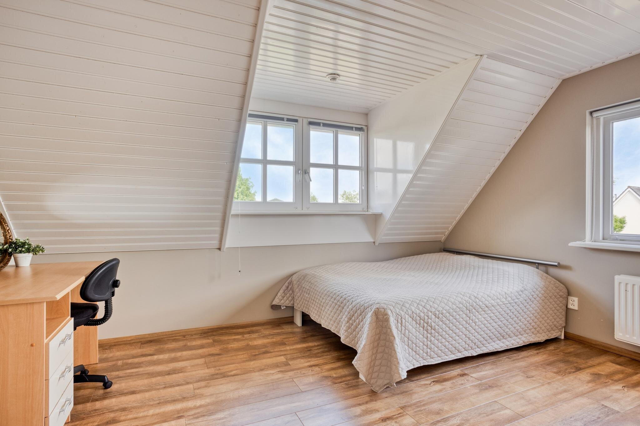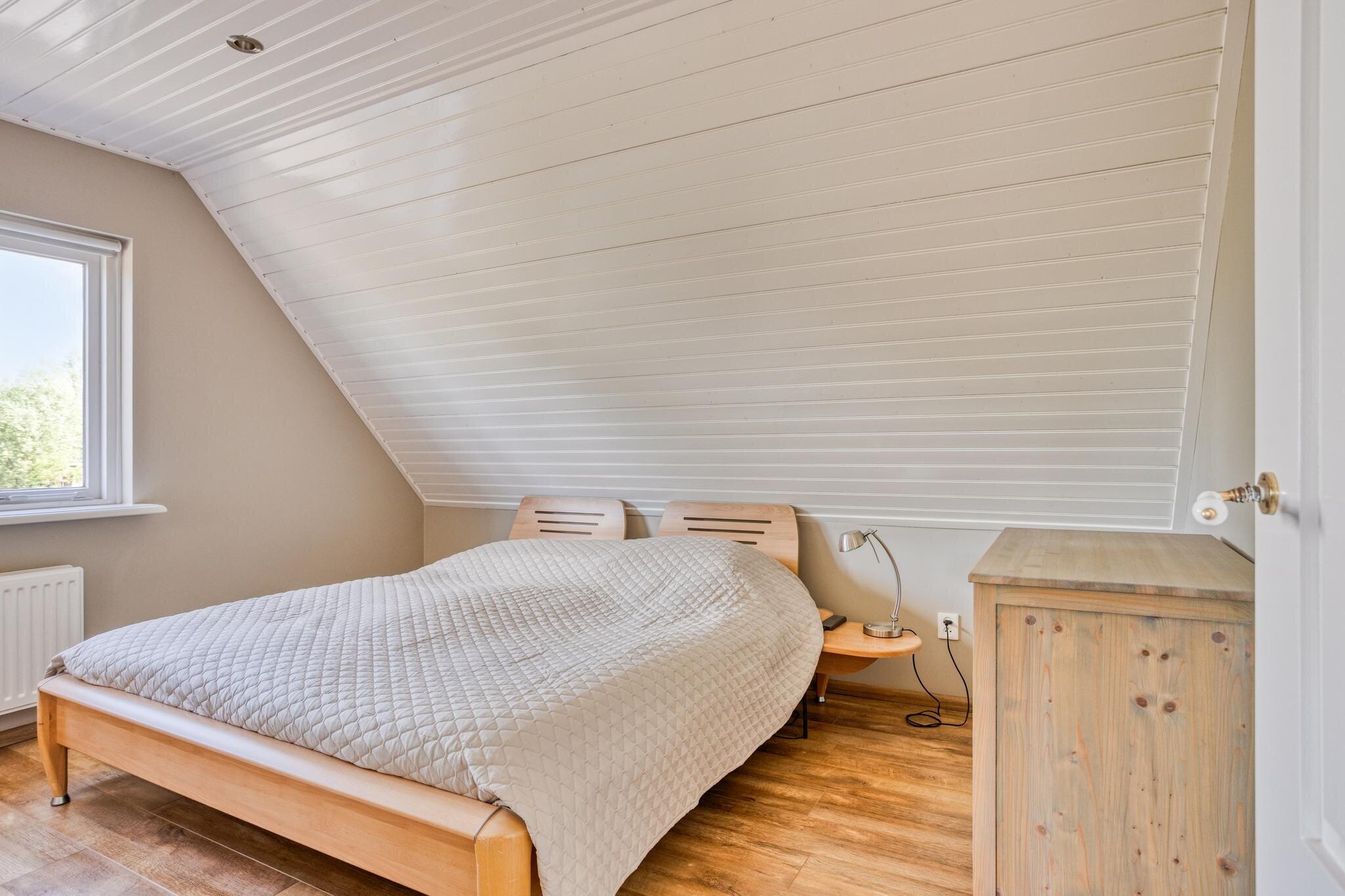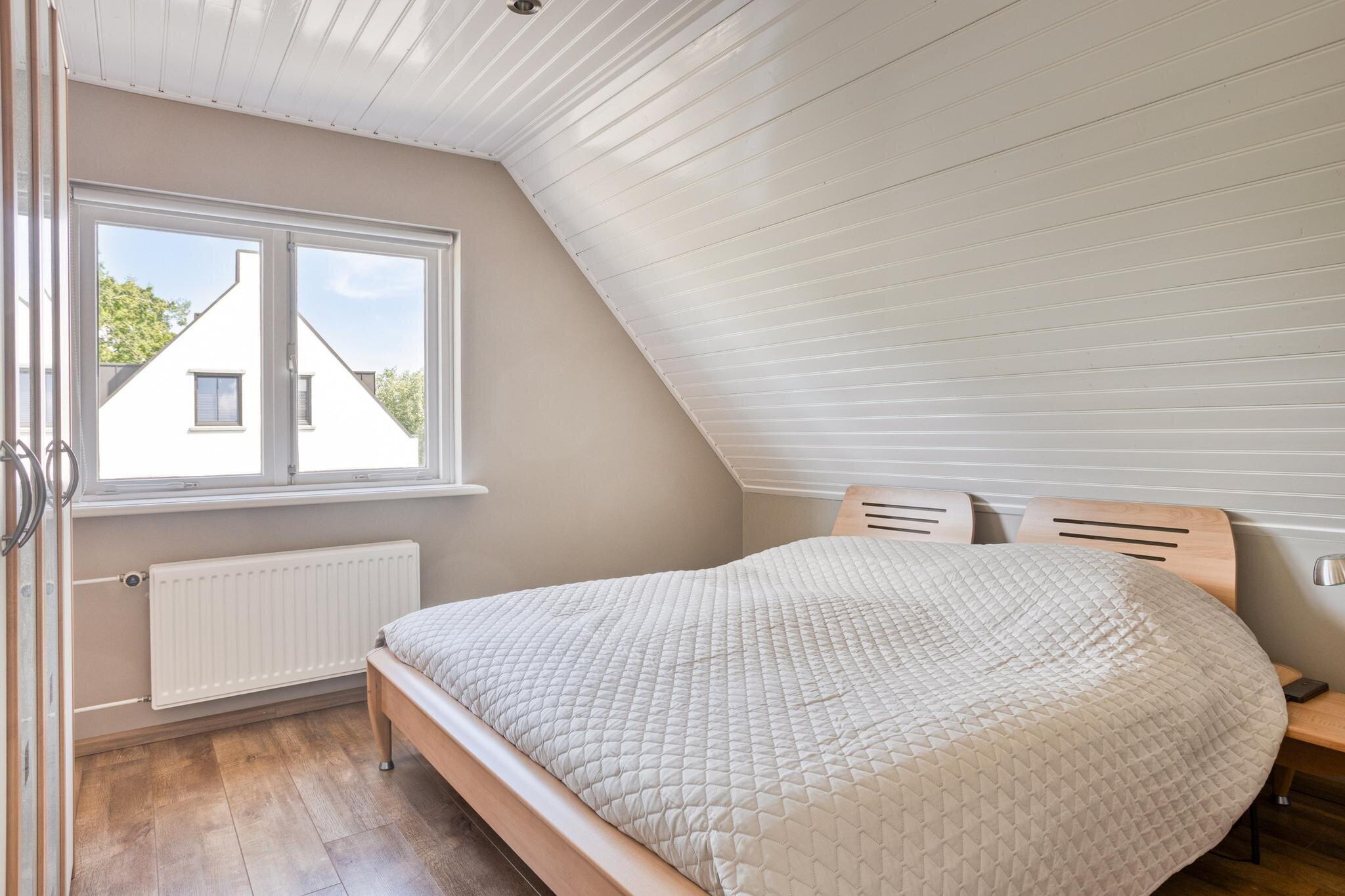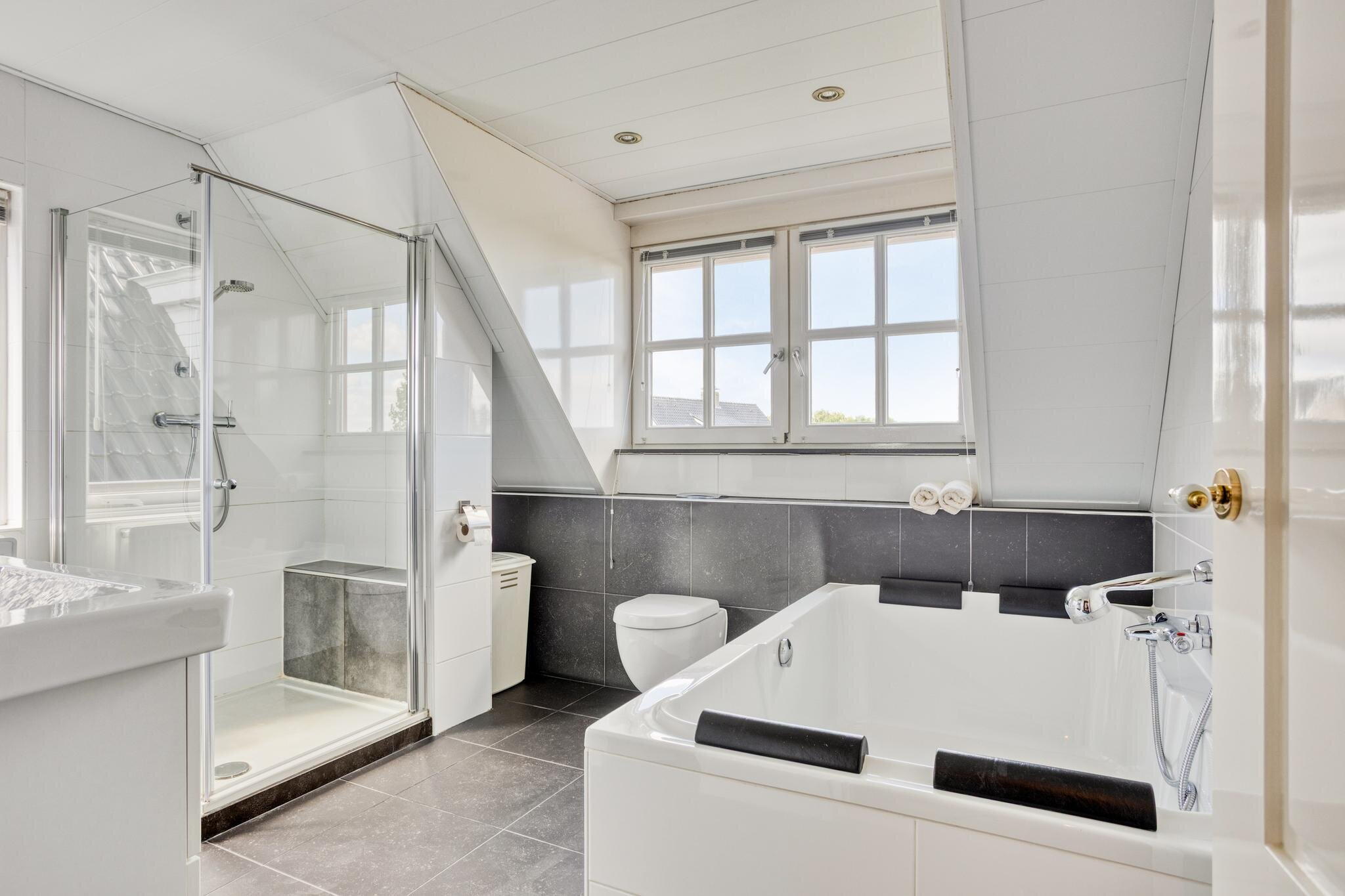 Op de verdieping vind je vier ruime slaapkamers, allemaal voorzien van veel lichtinval en nette afwerking. Eén kamer beschikt over handige inbouwkasten – ideaal als kleedruimte of extra opbergplek. De badkamer is modern en comfortabel, met een dubbel ligbad, inloopdouche, dubbele wastafel en toilet. Strak wit en eigentijds afgewerkt. Op zolder tref je nog een ruime verdieping met volop opbergmogelijkheden en zelfs twee extra kamers. Met wat aanpassingen creëer je hier met gemak twee extra slaapkamers – ideaal voor een groot gezin of thuiswerkers.