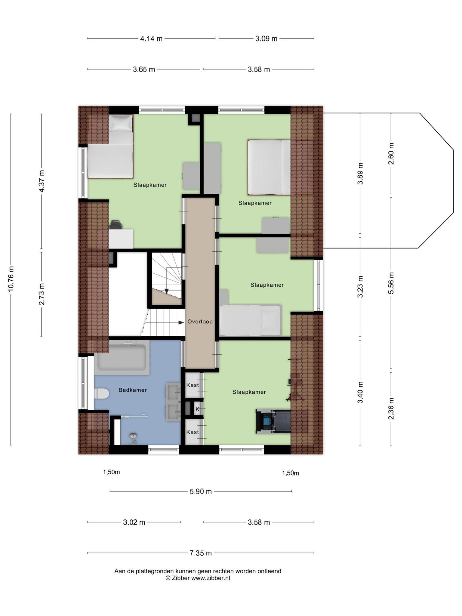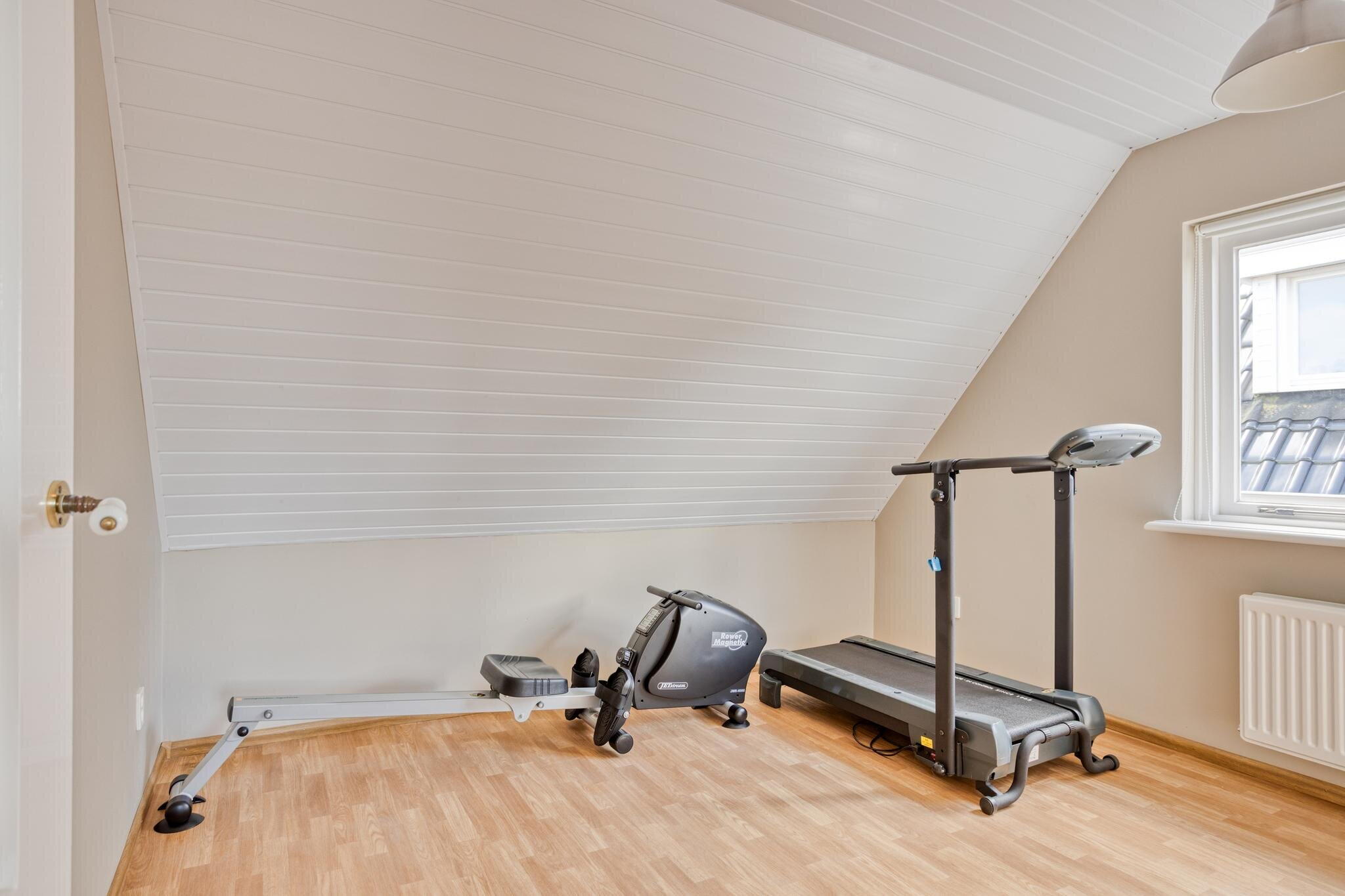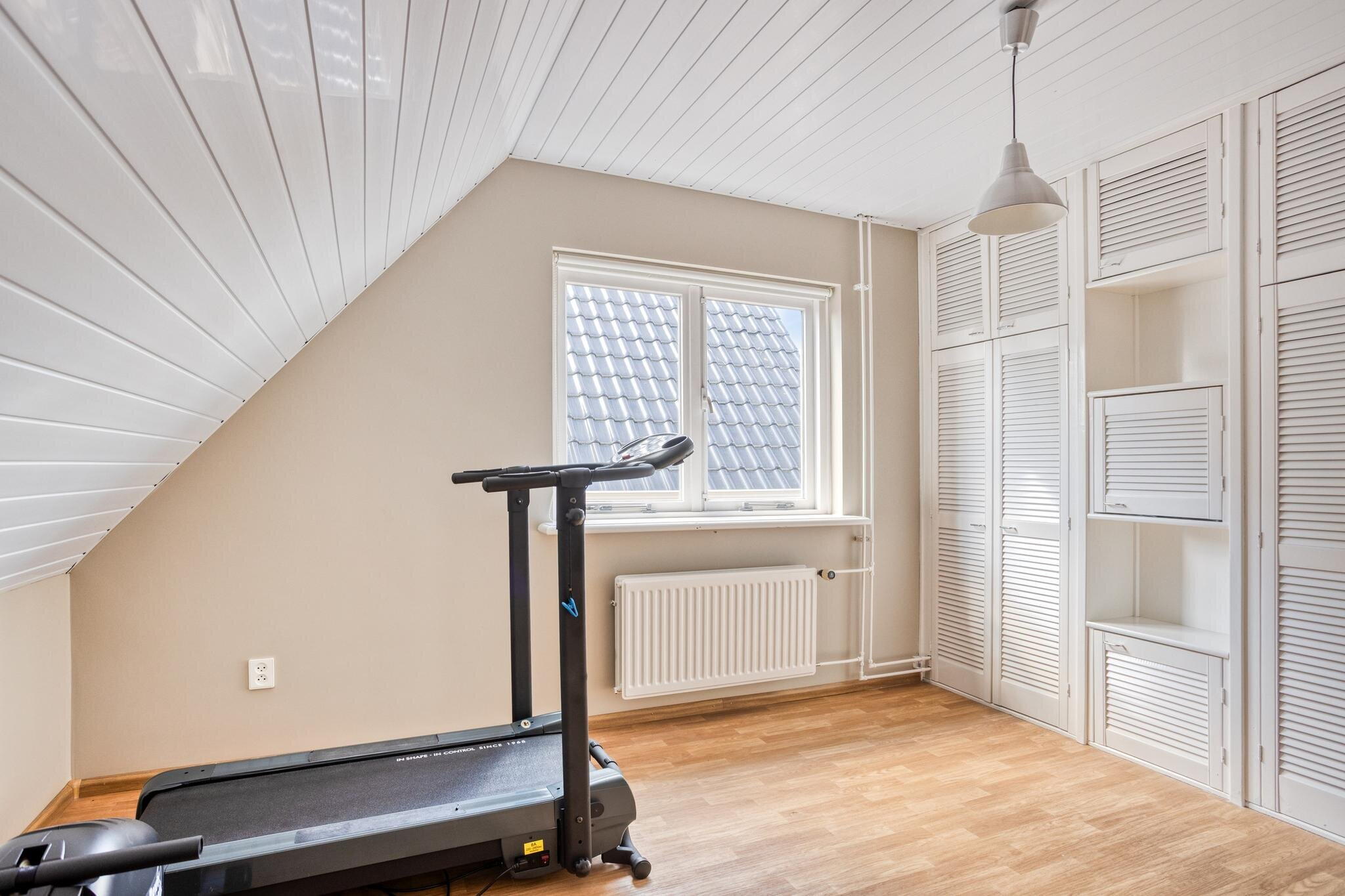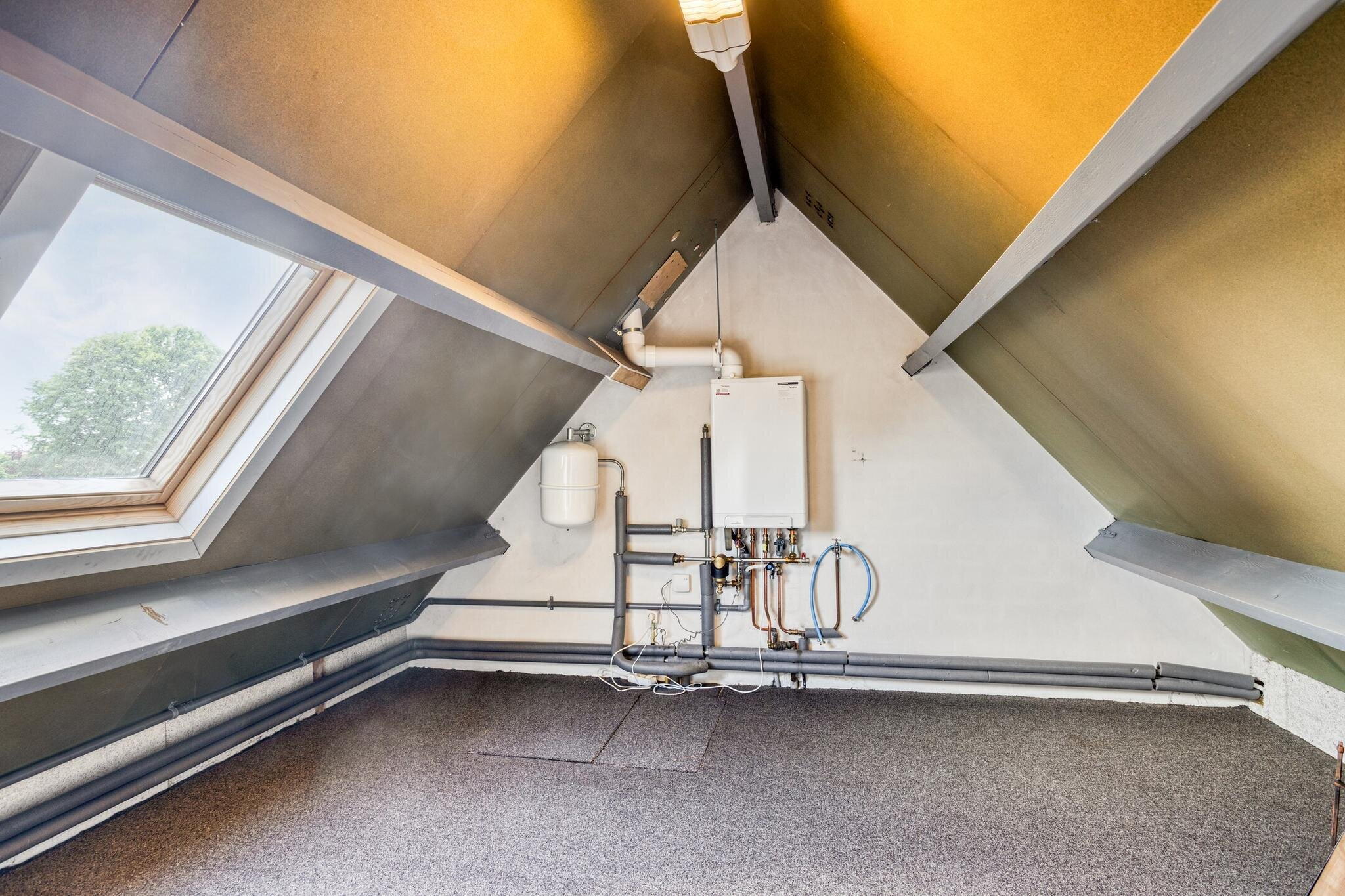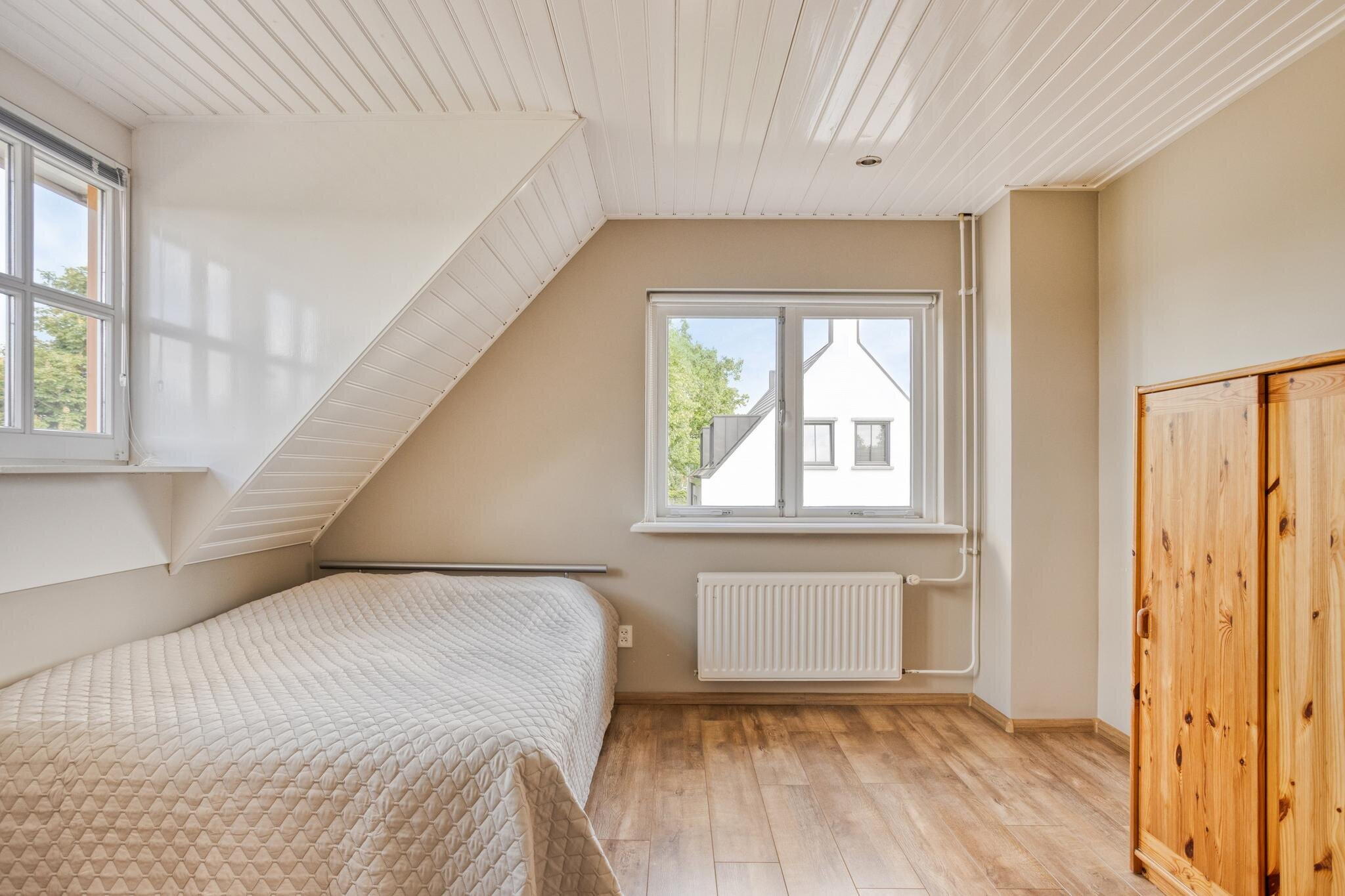 Op de verdieping vind je vier ruime slaapkamers, allemaal voorzien van veel lichtinval en nette afwerking. Eén kamer beschikt over handige inbouwkasten – ideaal als kleedruimte of extra opbergplek. De badkamer is modern en comfortabel, met een dubbel ligbad, inloopdouche, dubbele wastafel en toilet. Strak wit en eigentijds afgewerkt. Op zolder tref je nog een ruime verdieping met volop opbergmogelijkheden en zelfs twee extra kamers. Met wat aanpassingen creëer je hier met gemak twee extra slaapkamers – ideaal voor een groot gezin of thuiswerkers.