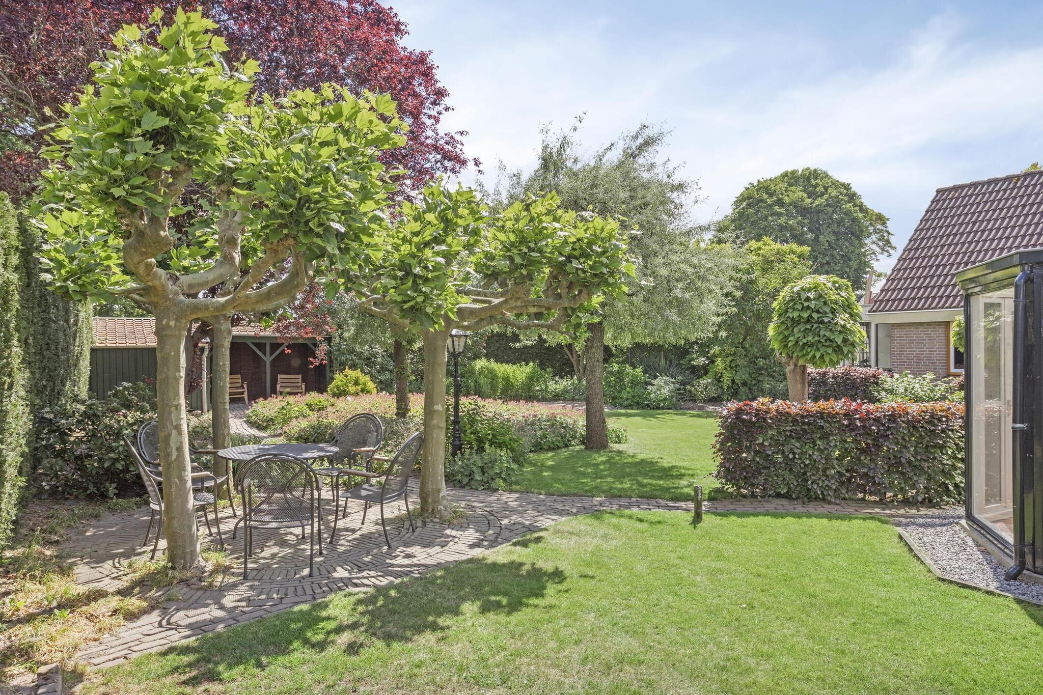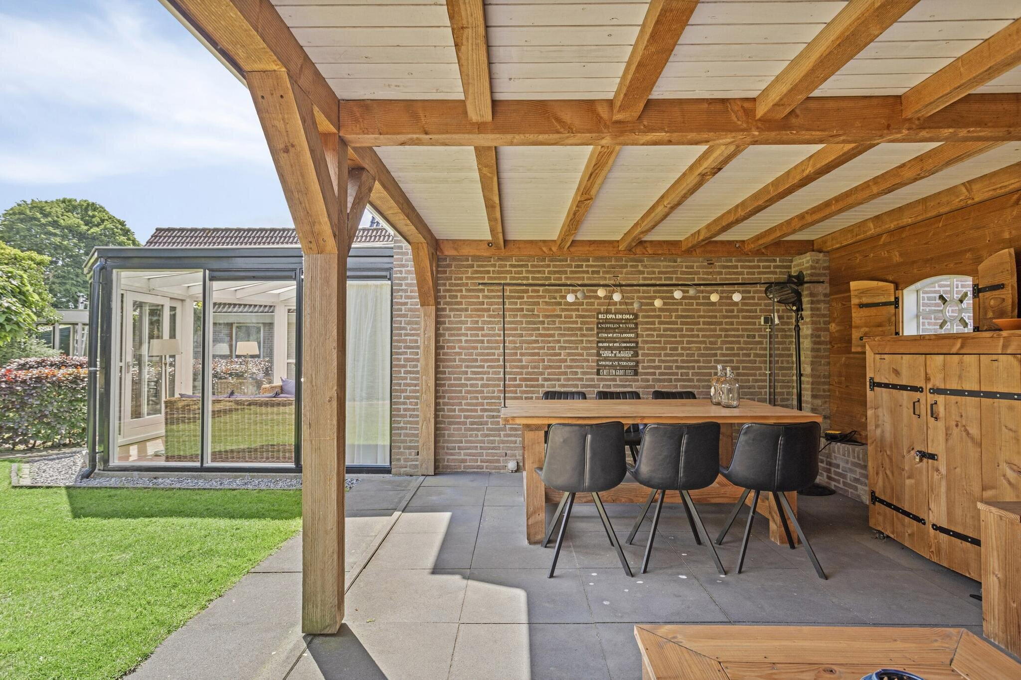 De achtertuin is een groene oase, met verschillende terrassen, bergingen en een grote overkapping – perfect voor een loungebank én eettafel. Of je nu van zonnebaden houdt of juist een plekje in de schaduw zoekt: hier zit je altijd goed.