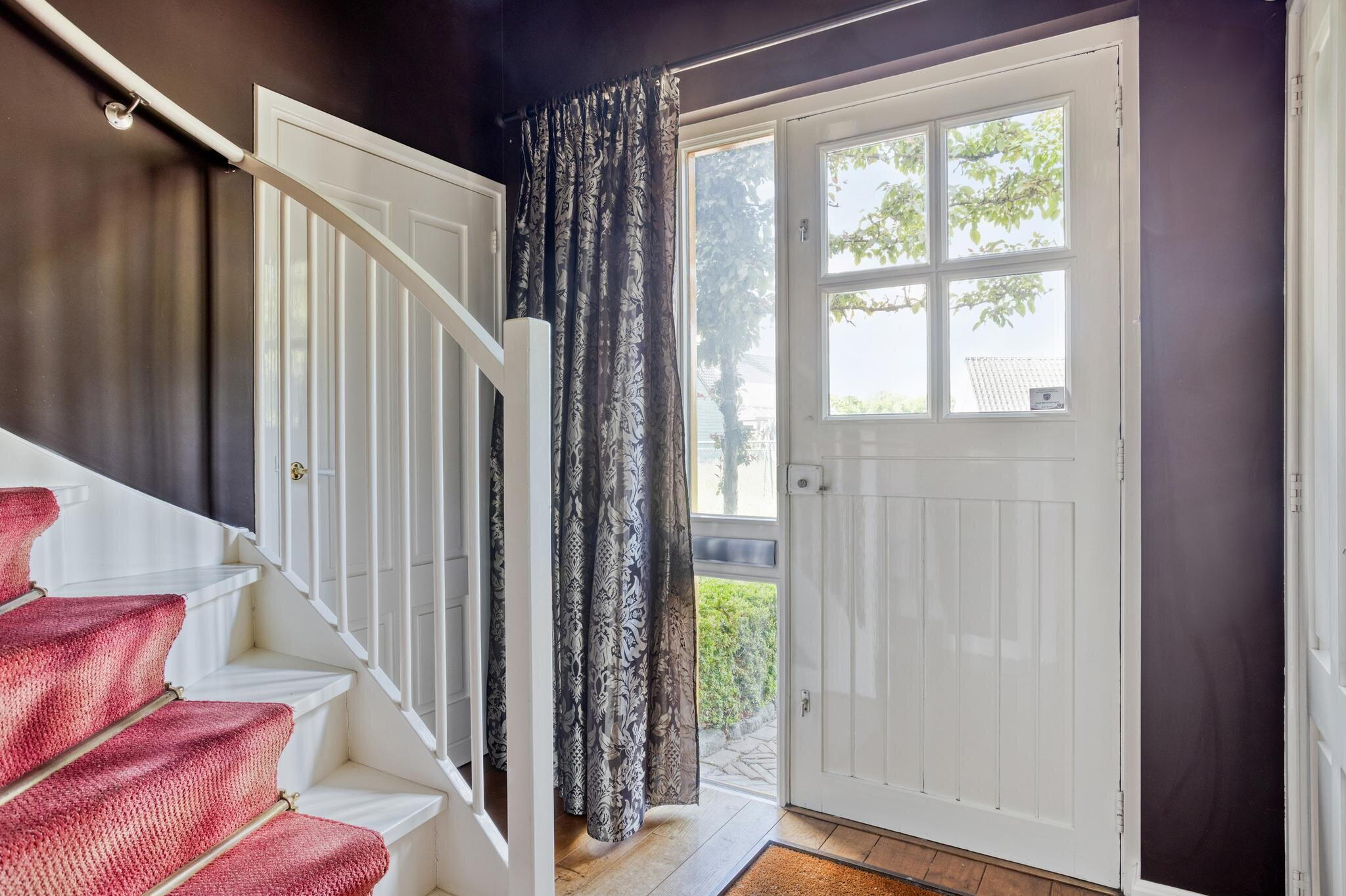 Parkeer de auto op je eigen oprit, op de twee eigen parkeerplaatsen naast de woning of in de ruime garage. De smalle maar fraai aangelegde voortuin verwelkomt je met groen en rust. Binnenkomend in de hal tref je het toilet, de meterkast, trapopgang, en heb je toegang tot zowel de keuken als de woonkamer. De sfeer van binnen begint al hier: verzorgd en uitnodigend.